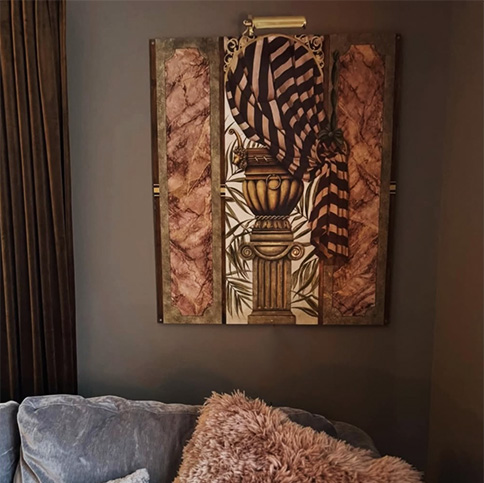 Utöver väggmålningar målar jag även i mindre skala. Det är en salig blandning av stilar och målade med olika typer av målarmedium. Oftast är det blandtekniker såsom akrylmåleri, oljemåleri, akvarell, färgpigment med öl, färgpennor, pastellpennor och förgyllning. Allt efter humör eller av nyfikenhet att testa något nytt material.